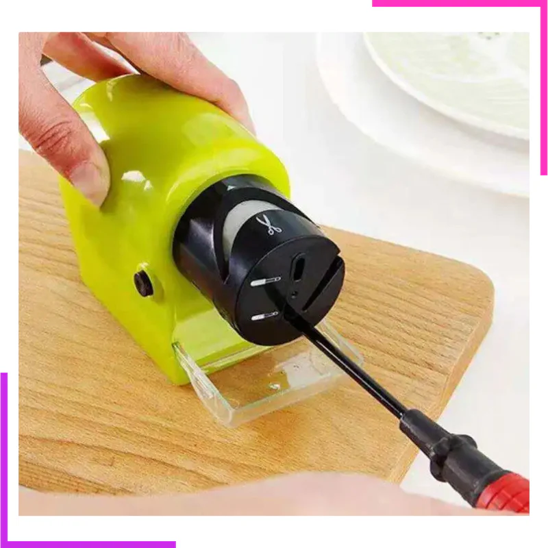 Aiguiseur de couteaux adéquat pour les couteaux à fruits, les couteaux de cuisine, les couperets, les ciseaux. Facile à nettoyer après utilisation Mode d’emploi : Cliquez sur la touche pour allumer l’interrupteur d’alimentation Placez la lame émoussée sur l’aiguiseur couteau electrique Cliquez sur le bouton rouge pour vous déplacer lentement Requiert 4 piles AA