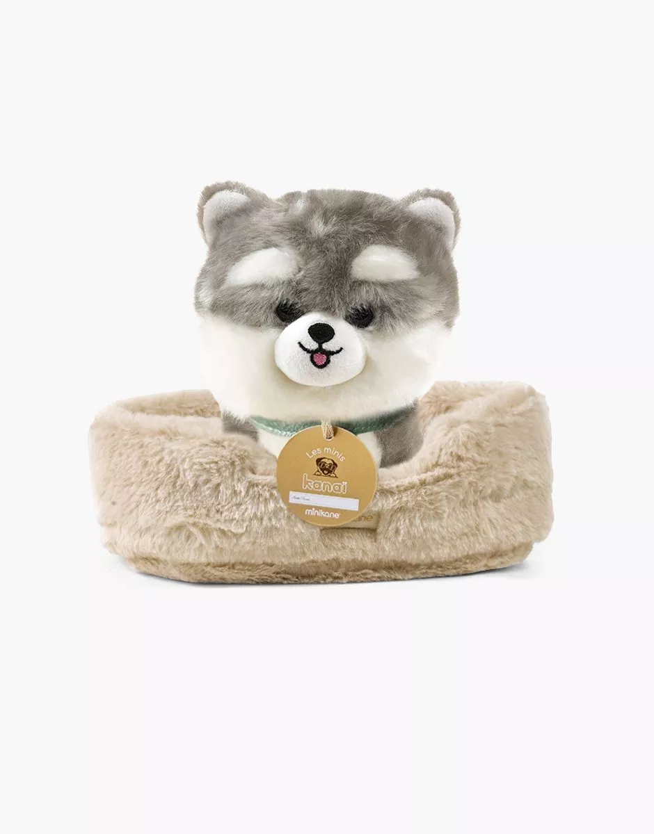 Le compagnon idéal pour un cadeau parfait : un animal de compagnie « Kanaï » habillé de son collier dans son joli panier tout doux.
