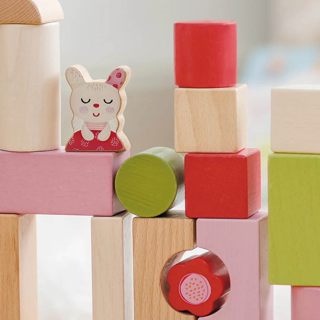 Le jeu enchanteur de Babablocks « Lapin Pipa » contient de nombreuses formes géométriques, imaginées pour que les enfants puissent créer et construire une multitude de structures. Certains blocs ont des angles arrondis pour un assemblage plus stimulant. Les différentes formes, les couleurs vives et les nombreuses possibilités de construction grâce aux 26 blocs fournis éveillent l’imagination tout en développant les capacités motrices et la coordination. La figurine petit lapin donne un caractère vivant au jeu de construction.