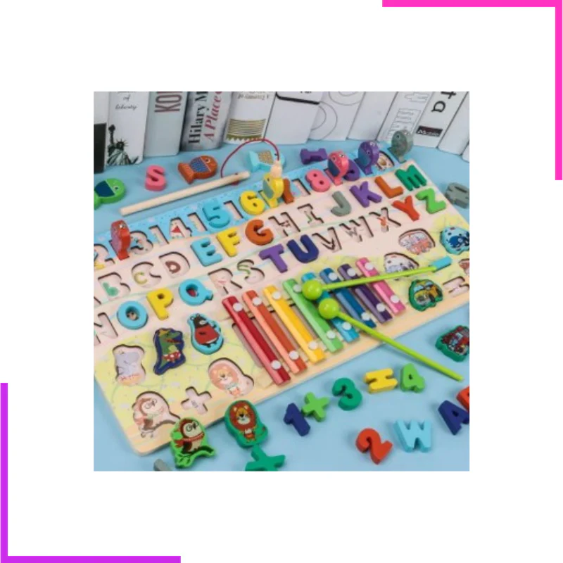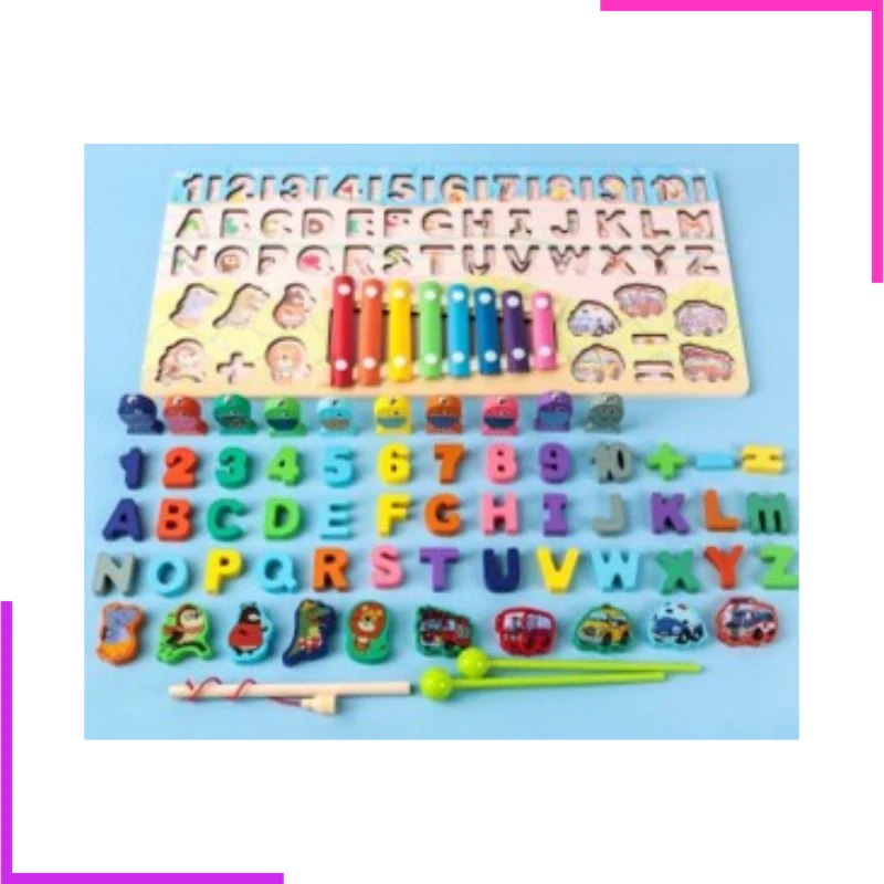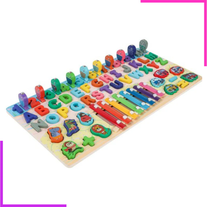 Jeu éducatif de correspondance en bois lisse composé d’un xylophone : Permet d’apprendre les animaux, les véhicules, les lettres et les notes musicales. Pour enfant de 2 à 5ans. Aide à améliorer la reconnaissance des couleurs et leur coordination œil-main .