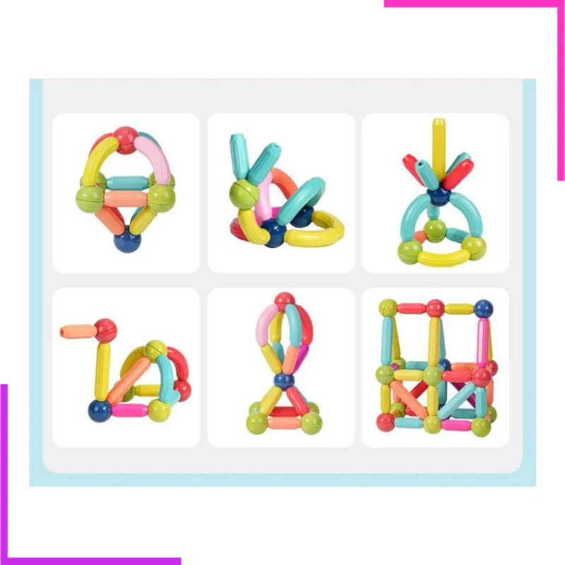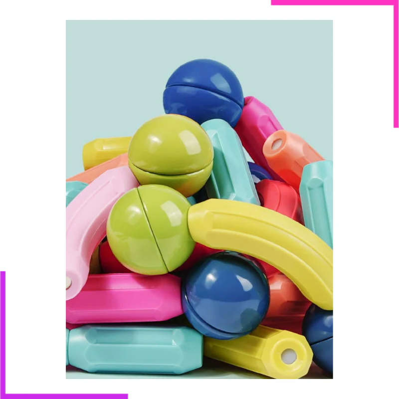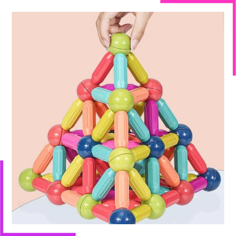 Jeu de construction coloré à aimant : Une variété de formes et de motifs possibles, Pour les enfants de 3 à 8 ans. 130 pièces disponibles facile à connecter et déconnecter