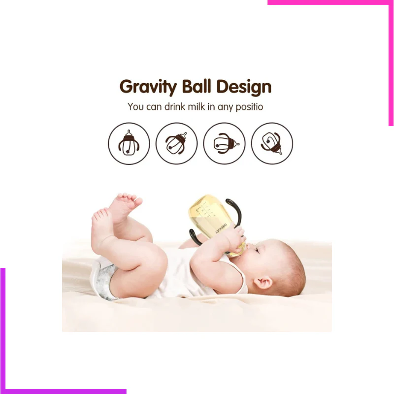 Ce biberon innovant est conçu pour offrir une alimentation plus confortable et naturelle à votre bébé. Grâce à sa paille gravitationnelle, le liquide reste accessible quel que soit l’angle d’inclinaison du biberon, permettant à l’enfant de boire facilement en position assise, inclinée ou allongée.