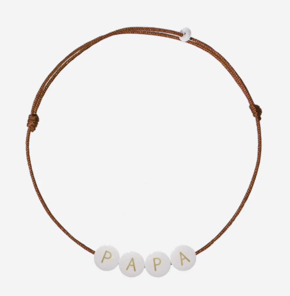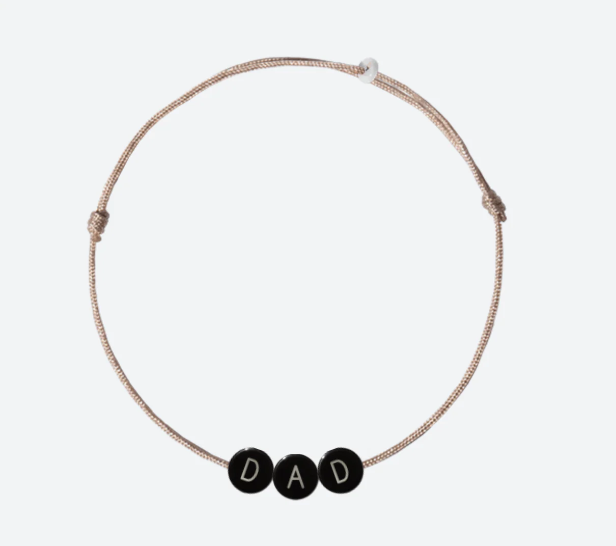 Le bracelet ferme et s’ajuste grâce à 2 noeuds coulissants.