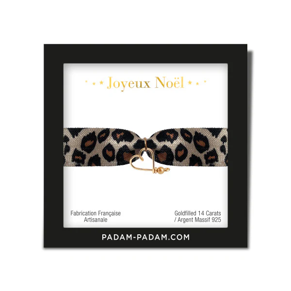 CETTE ANNÉE LE LÉOPARD FERA PARTI DE VOTRE GARDE-ROBE AVEC CE JOLI BRACELET EN TISSU POUR ENFANT, CONSTITUÉ D’UN PETIT COEUR SCULPTÉ EN ARGENT MASSIF OU EN GOLDFILLED 14 CARATS.
