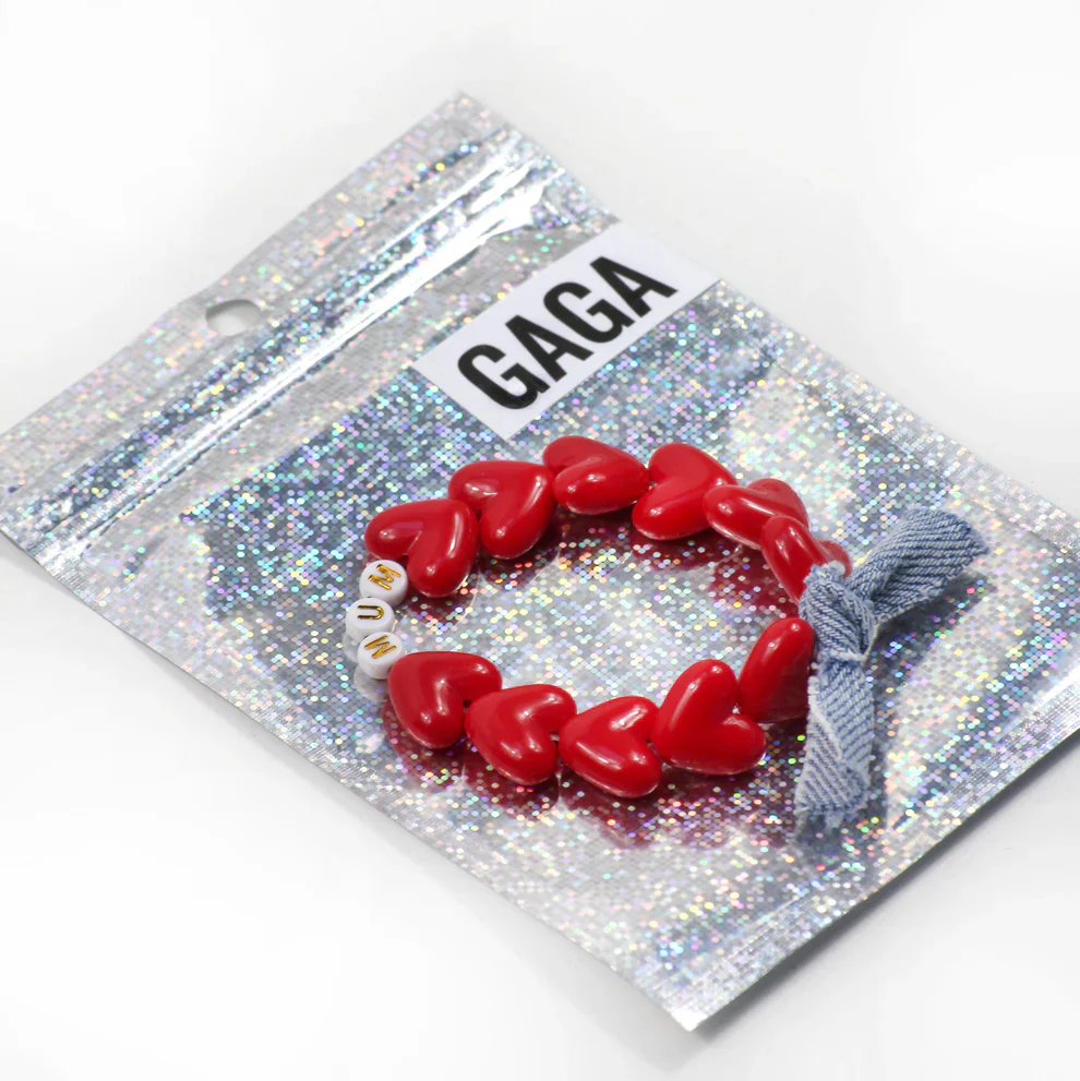 Célébrez la maternité avec douceur et originalité grâce à ce bracelet “Mum to Be” signé GAGA. Un accessoire plein d’amour pour les futures mamans, idéal en cadeau de grossesse ou pour une baby shower. Confectionné avec de grands cœurs rouges brillants, des perles lettres blanches et un joli nœud en jean, ce bijou coloré est […]