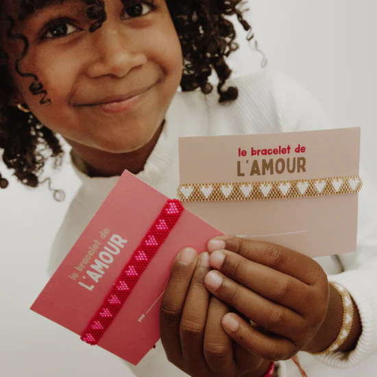 • Présenté sur une carte illustrée “Le bracelet de l’amour”