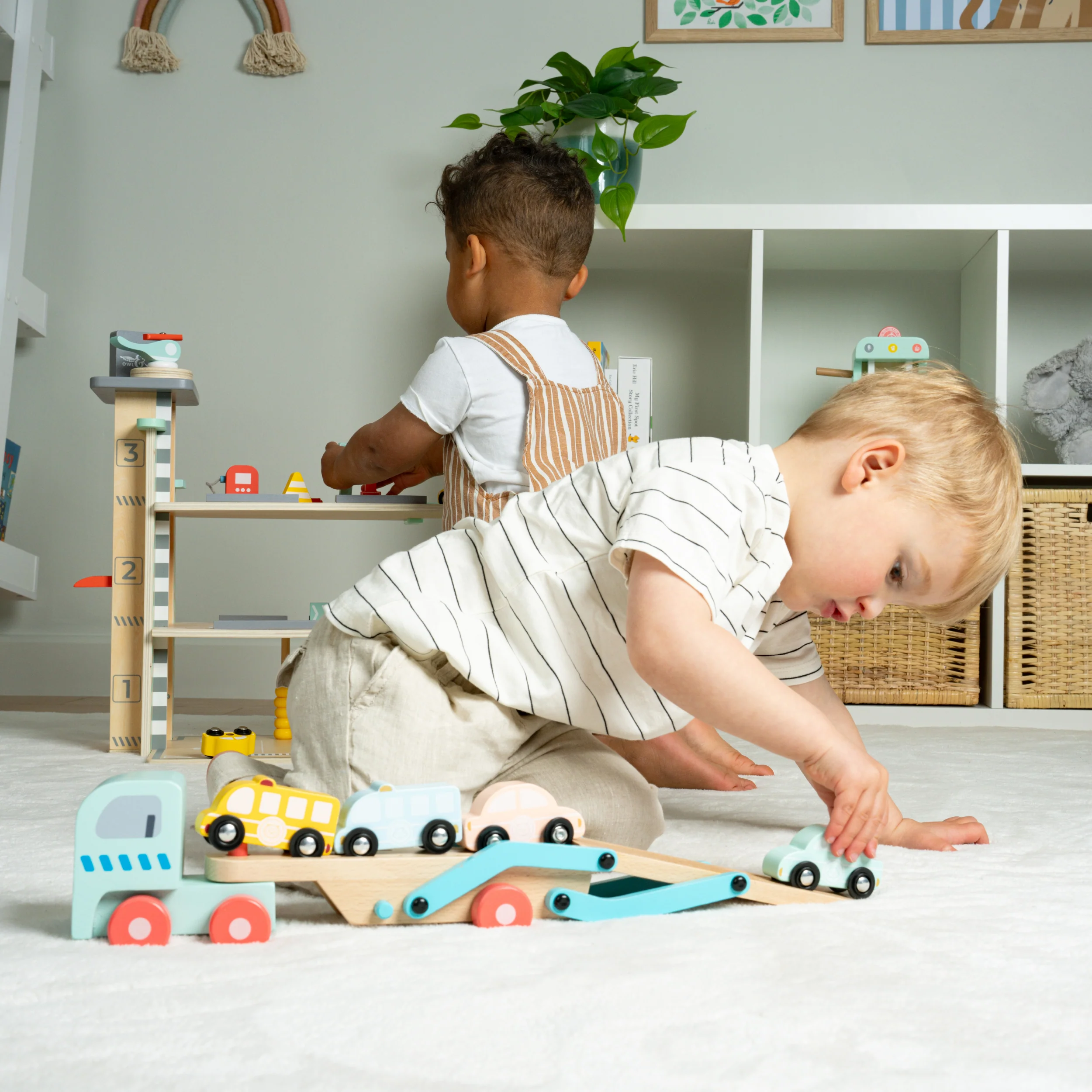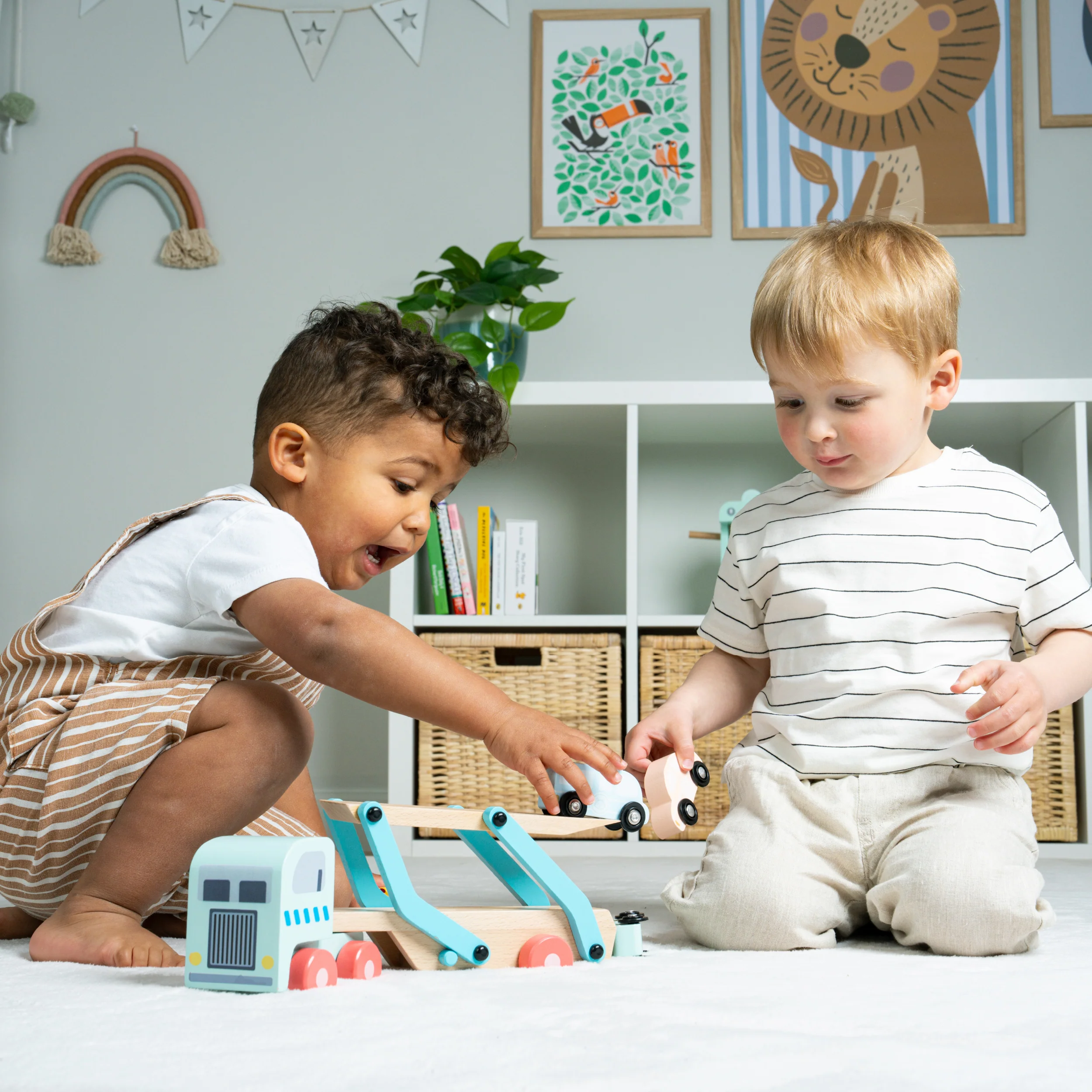 Amusez-vous avec le Transporteur de Véhicules Owl & Fox, idéal pour les petits passionnés de voitures.