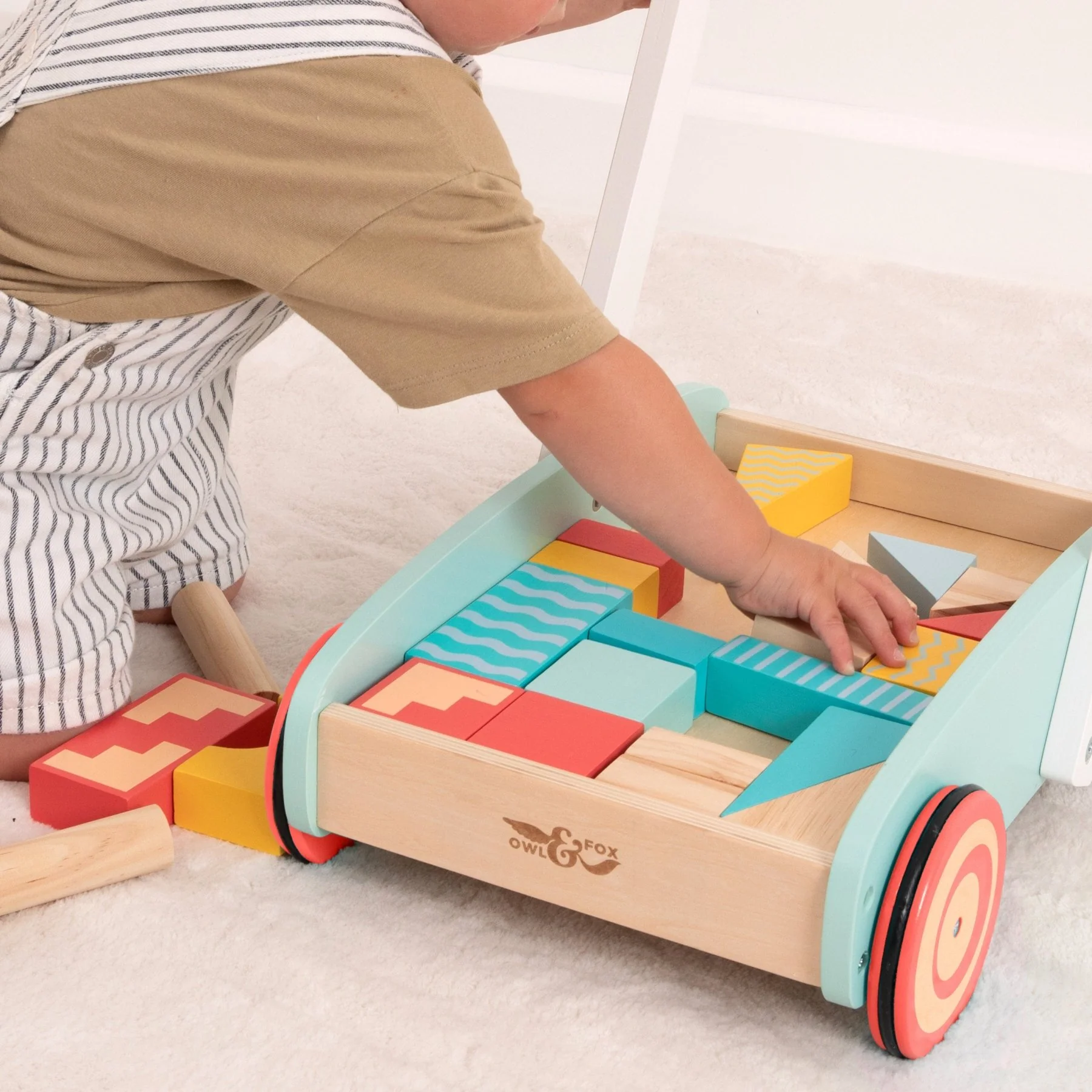 Chariot de marche en bois FSC® Owl & Fox : aide bébé à marcher tout en jouant avec des cubes colorés. Favorise la motricité globale, la coordination et le jeu symbolique dès 12 mois. Design élégant et durable, fabriqué en bois certifié FSC®. Idéal pour un apprentissage ludique et sécurisé.