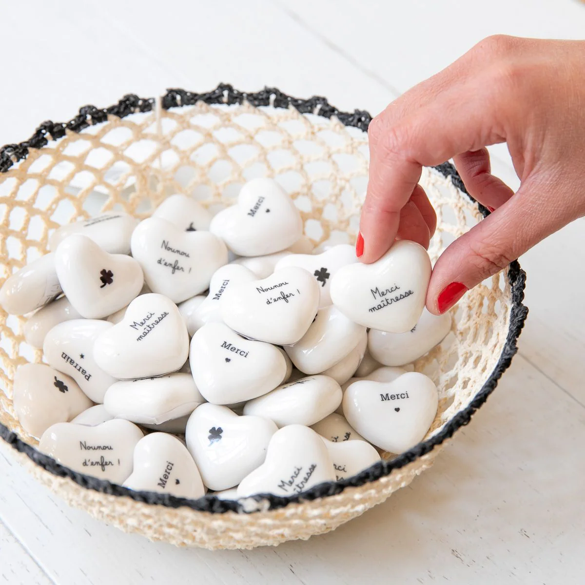 Ne cherchez plus et offrez ce petit coeur écrit « Merci Maîtresse » en céramique trop mignon ! En plus d’être décoratif il servira de véritable porte-bonheur à votre institutrice.