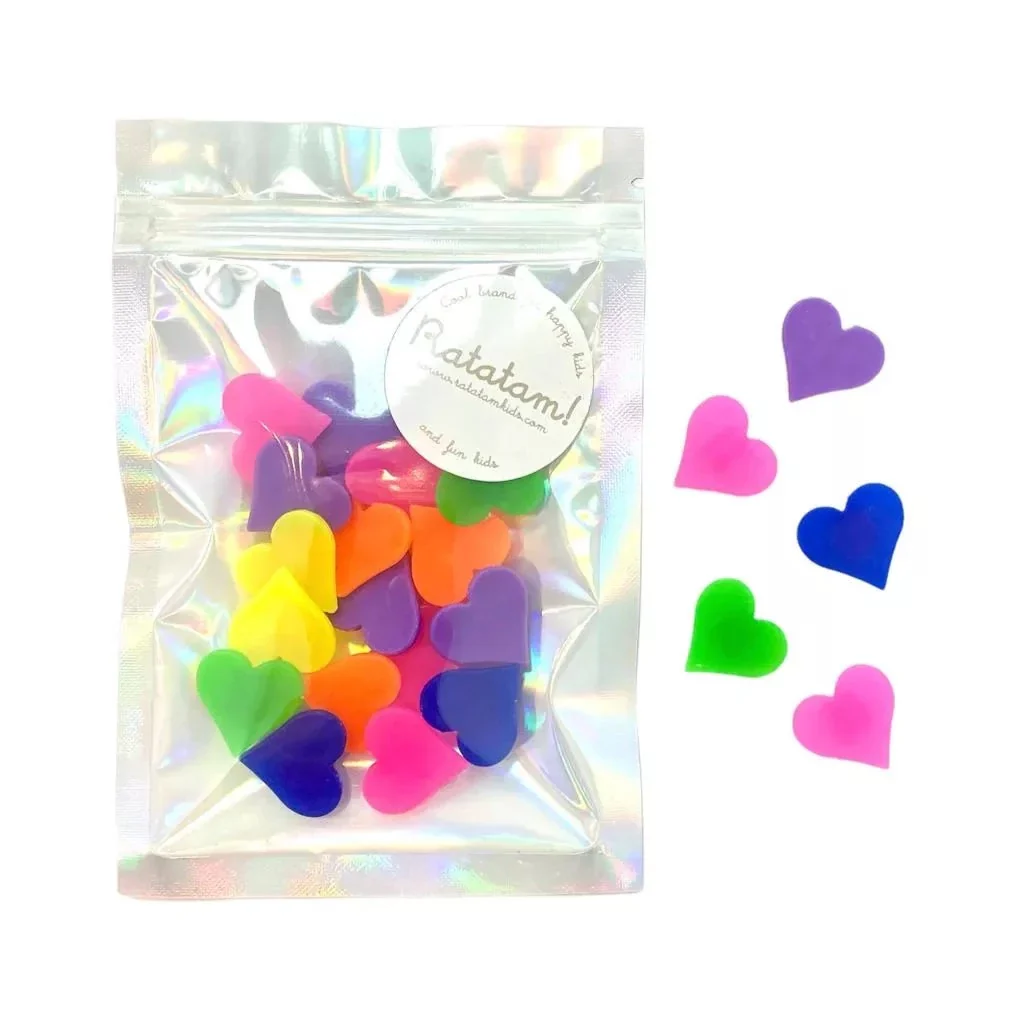 Pour les enfants qui souhaitent customiser leur vélo, ces jolis coeurs colorés à éclipser de la marque Ratatam apporteront encore plus de style au vélo ! Marque : Ratatam Référence : BS-A040 Contenu : 20 coeurs multicolore. Composition : Plastique.