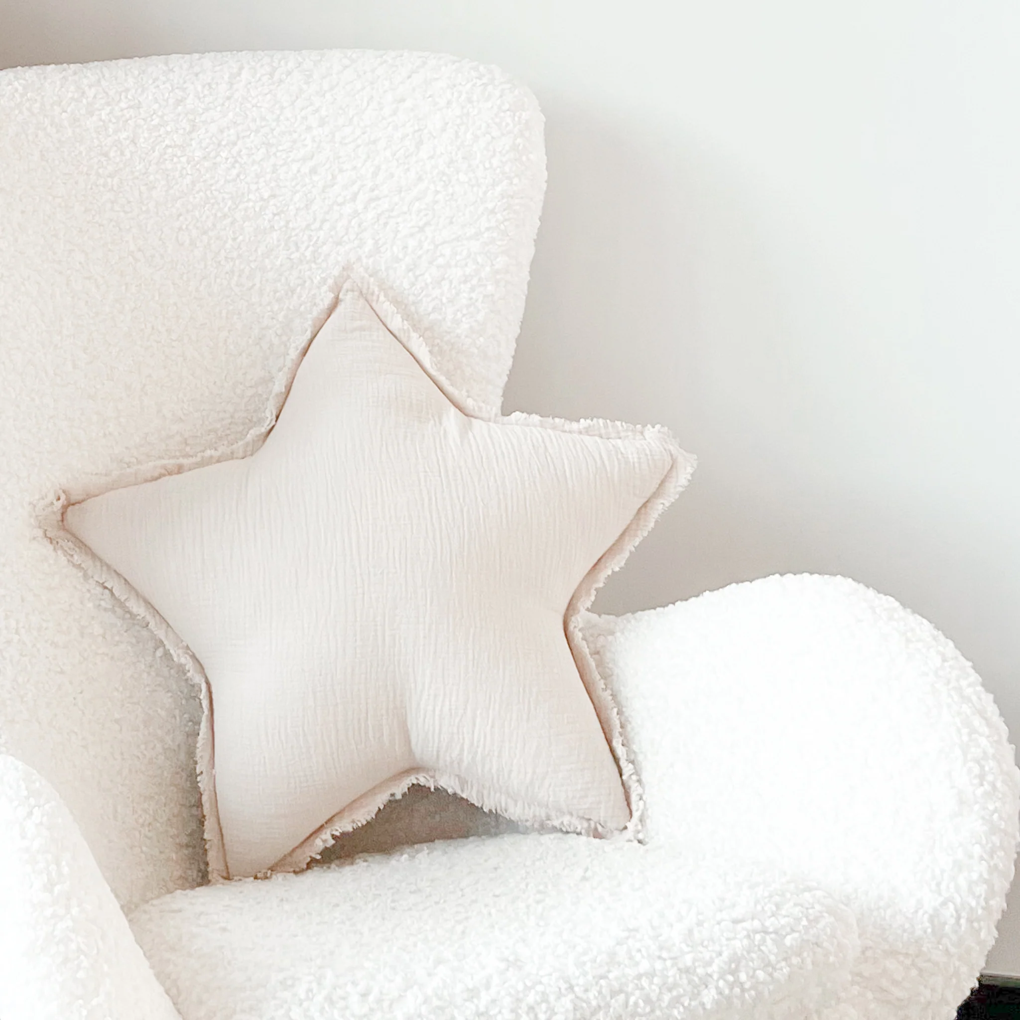 Coussin décoratif chambre d’enfant | Étoile – mousseline beige