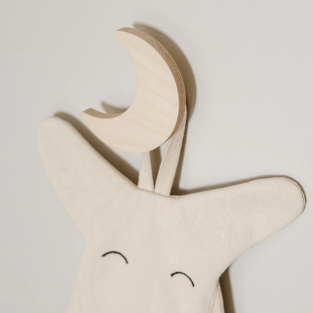 Crochets muraux en bois chambre d’enfant | Étoile et lune – naturel