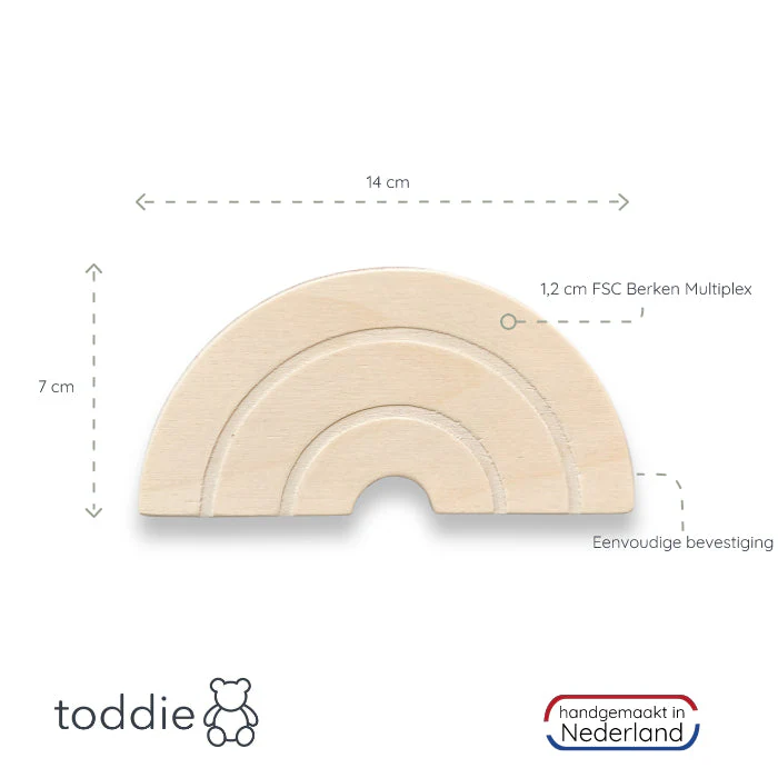 Crochets muraux en bois chambre d’enfant | Arc en ciel et cœur – naturel