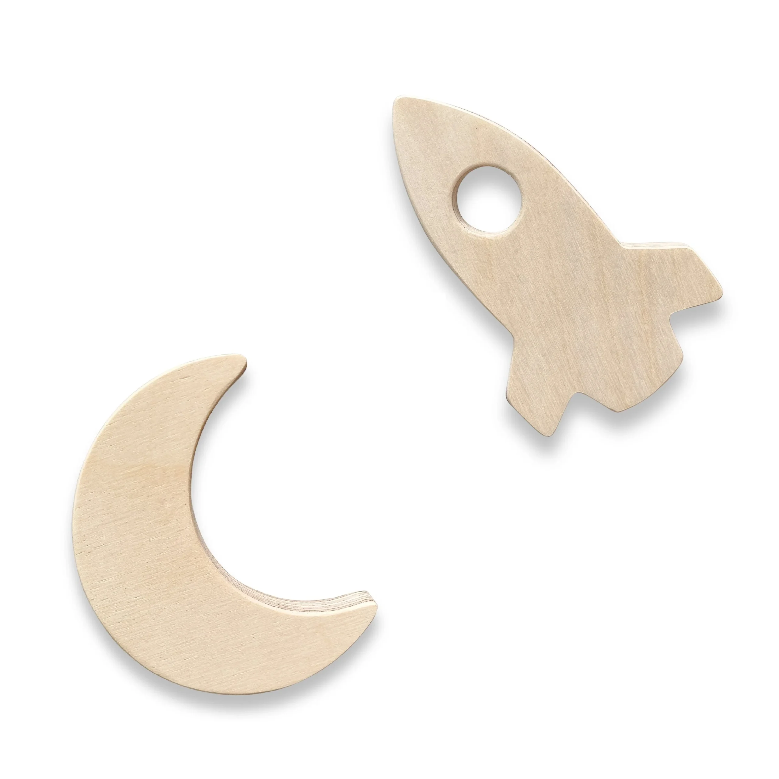 Crochets muraux en bois chambre d’enfant | Fusée et lune – naturel
