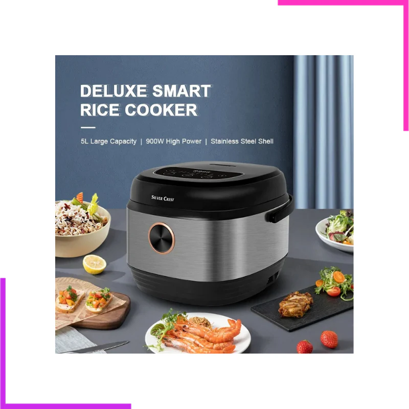 Préparez vos repas en toute simplicité avec le cuiseur à riz intelligent Silver Crest. Doté d’une capacité généreuse de 5 litres, il est idéal pour les familles nombreuses ou les amateurs de batch cooking. Son design moderne en acier inoxydable s’intègre parfaitement dans toutes les cuisines, alliant style et robustesse. 💡 Fonctionnalités principales : Capacité […]