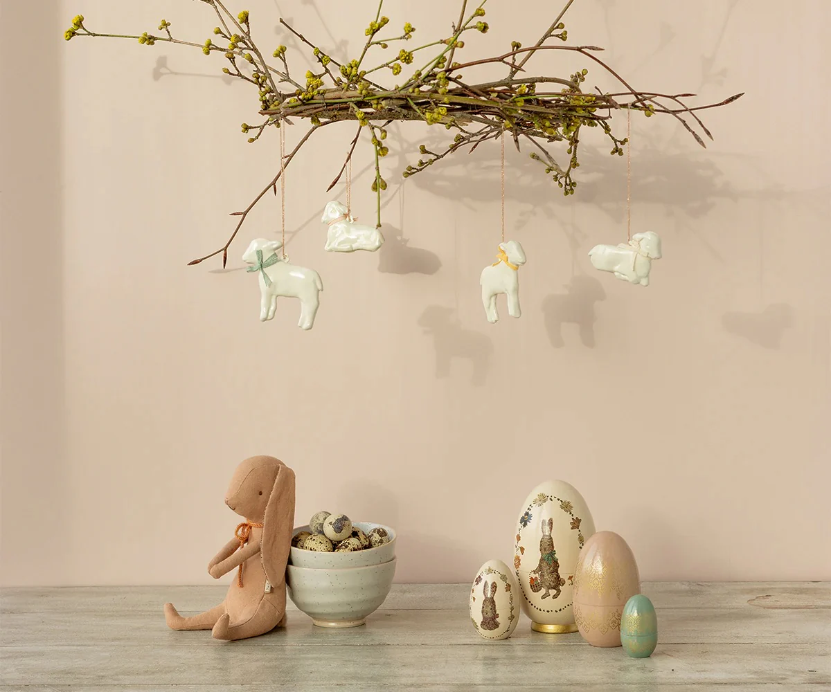 Cet agneau en métal à suspendre de la marque Maileg peut être mixé avec les autres sujets de la même marque proposés par Ma Biche.