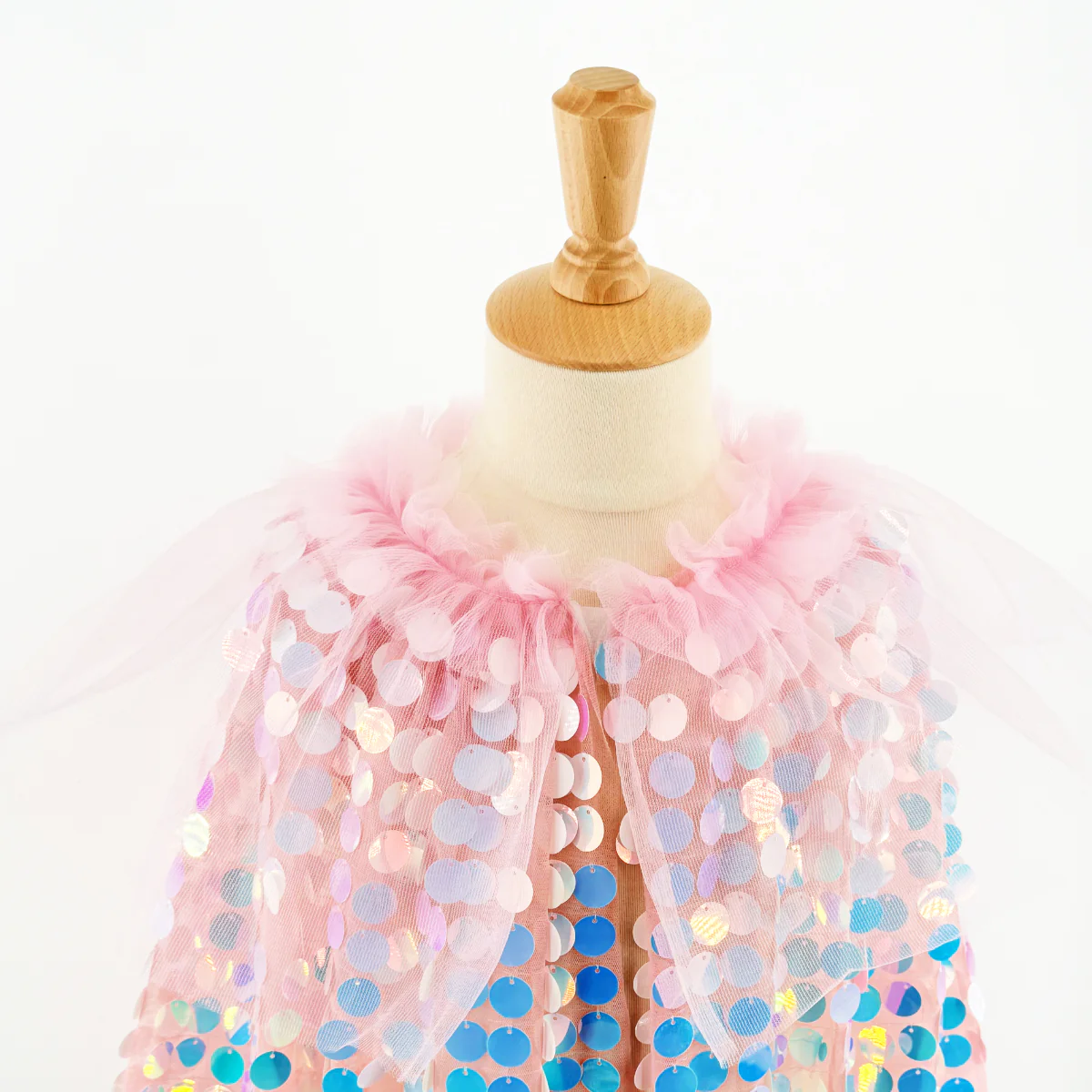 Cape longue rose à sequins iridescents