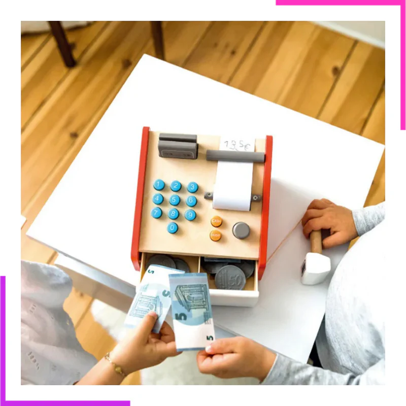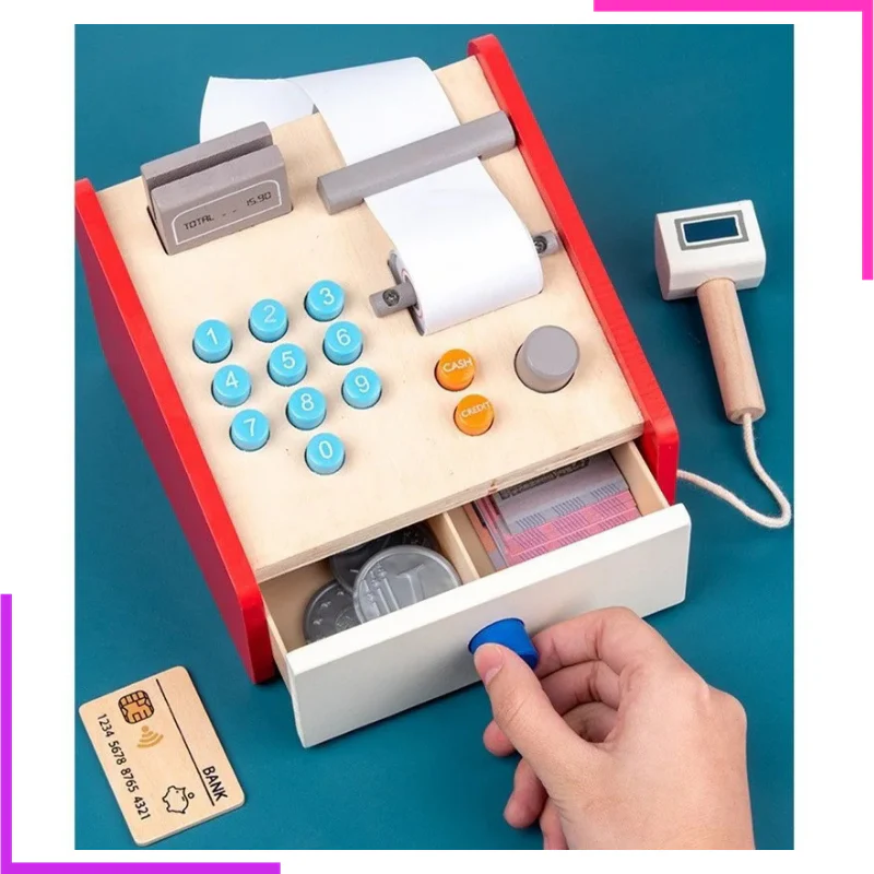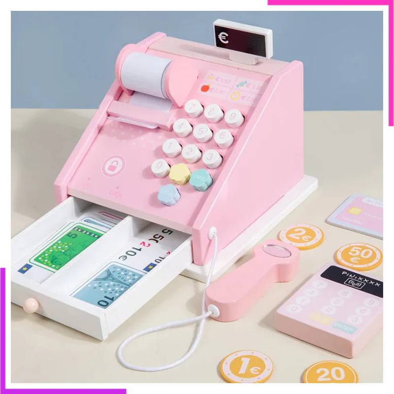 Jeu Imitation Caisse Enregistreuse Enfant Excellente façon de développer la motricité fine de l’enfant Idéale pour encourager les jeux de rôles En matériaux de qualité supérieur, non toxique Pour les enfants dès 5ans