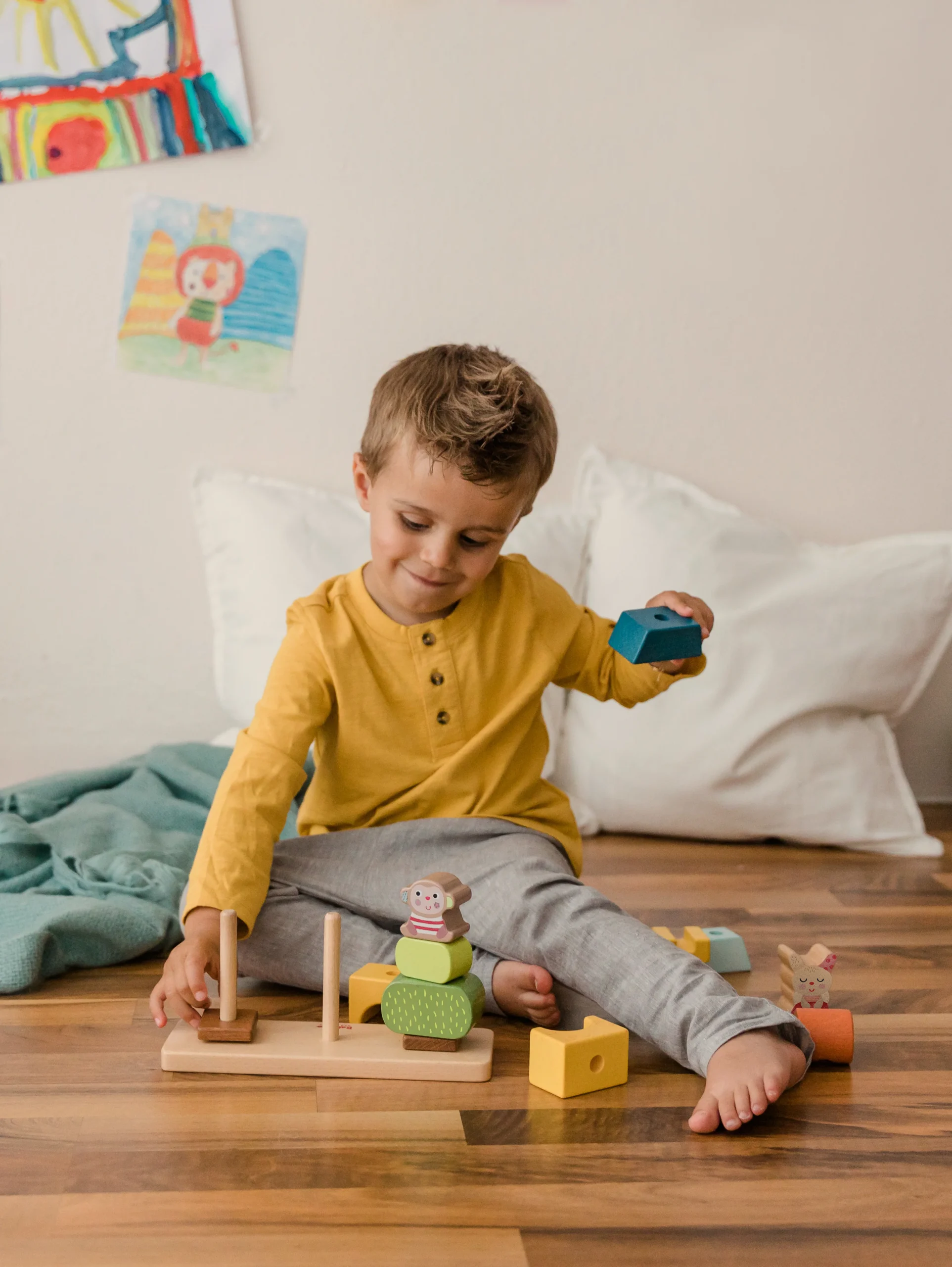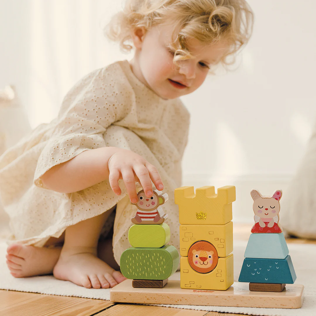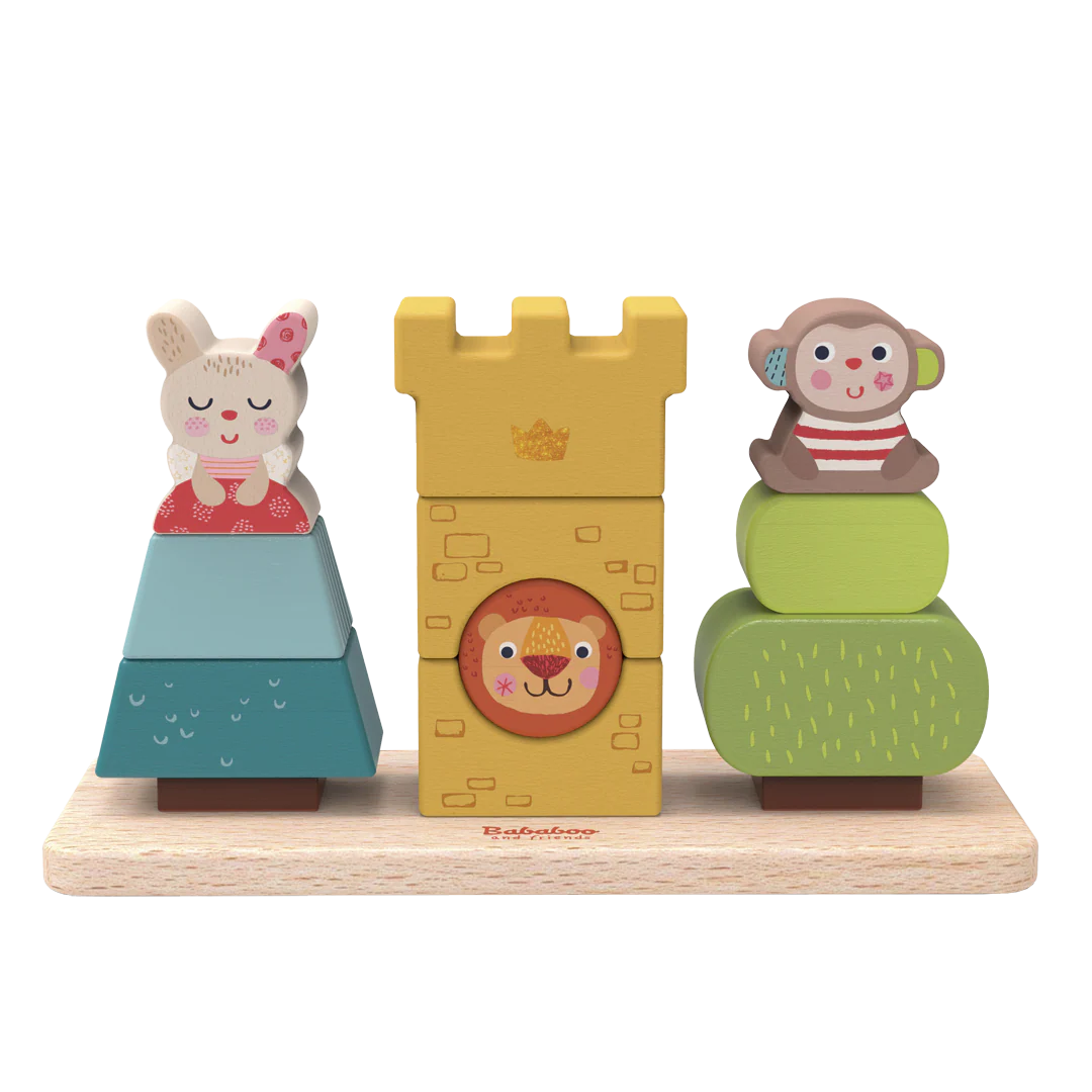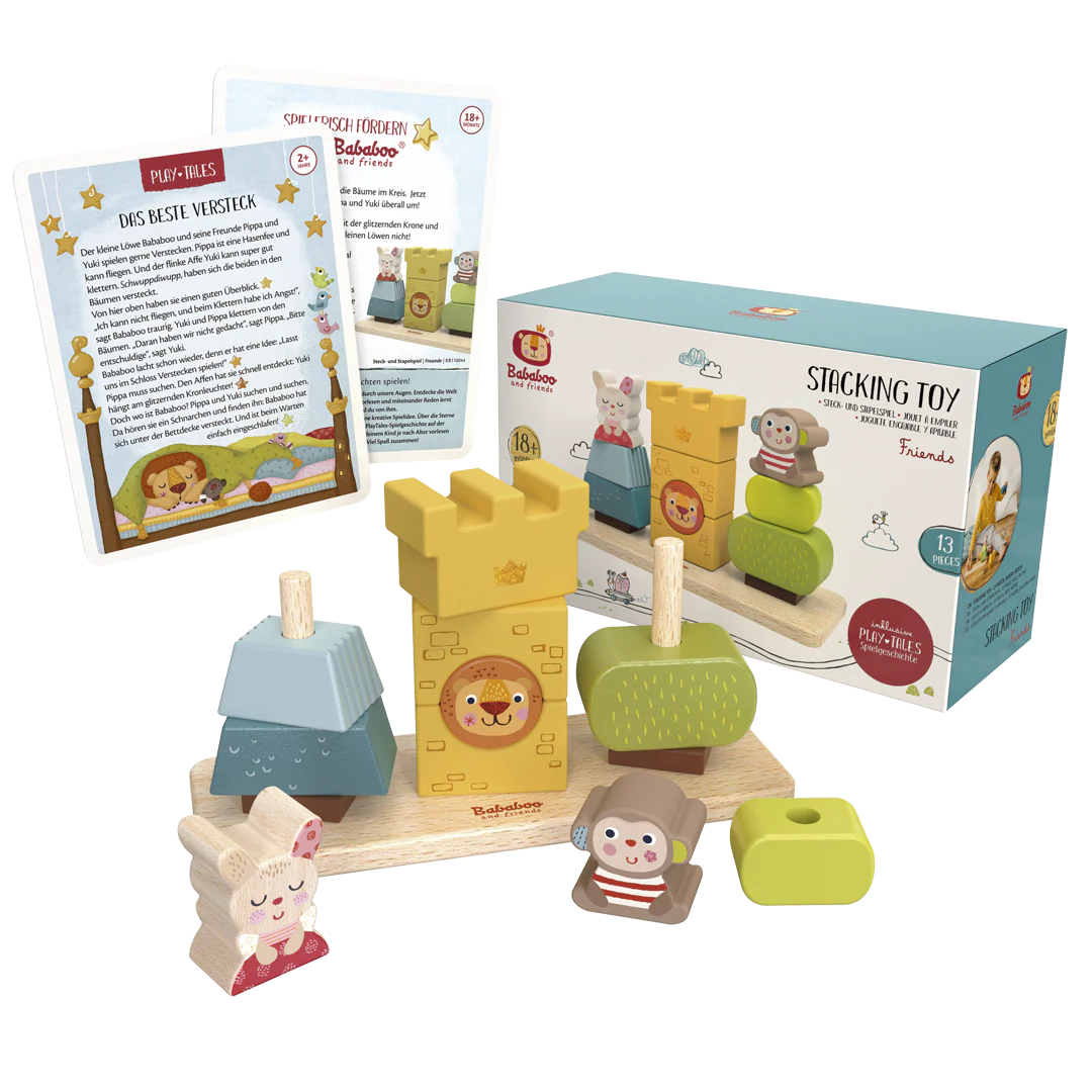 Bababoo trouve la meilleure cachette dans la chambre de ses enfants. Quand Pipa et Youki le trouvent enfin, il s’endort ! Les jeux colorés de branchement et d’empilage Bababoo and Friends® sont idéaux pour les petits artistes empileurs. Des blocs de construction en bois astucieusement conçus, de différentes formes et tailles, peuvent être empilés les uns sur les autres.