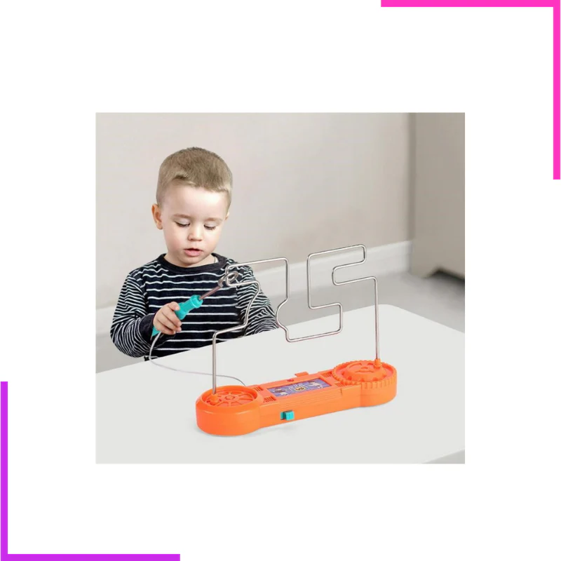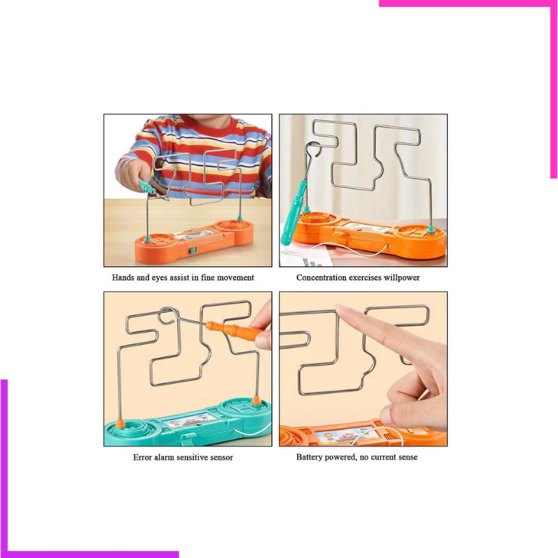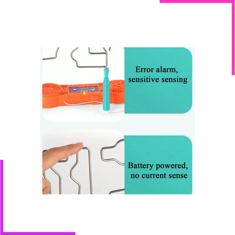 - Mode d’emploi: lorsque la poignée en métal touche le labyrinthe en métal, elle émet un son d‘alarme et la lumière clignote