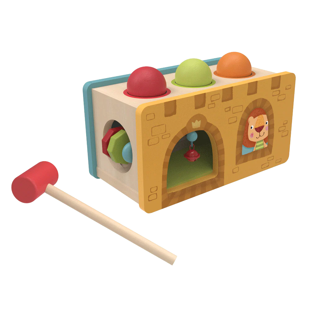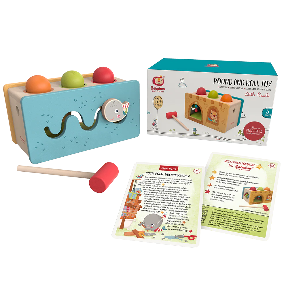 Le jouet à marteler « Petit château » offre à chaque enfant toute une gamme de plaisirs ! Contrairement aux jouets à marteler traditionnels, diverses activités sont intégrées des deux côtés du jouet, accompagnées d’illustrations issues de l’univers de Bababoo and friends®.