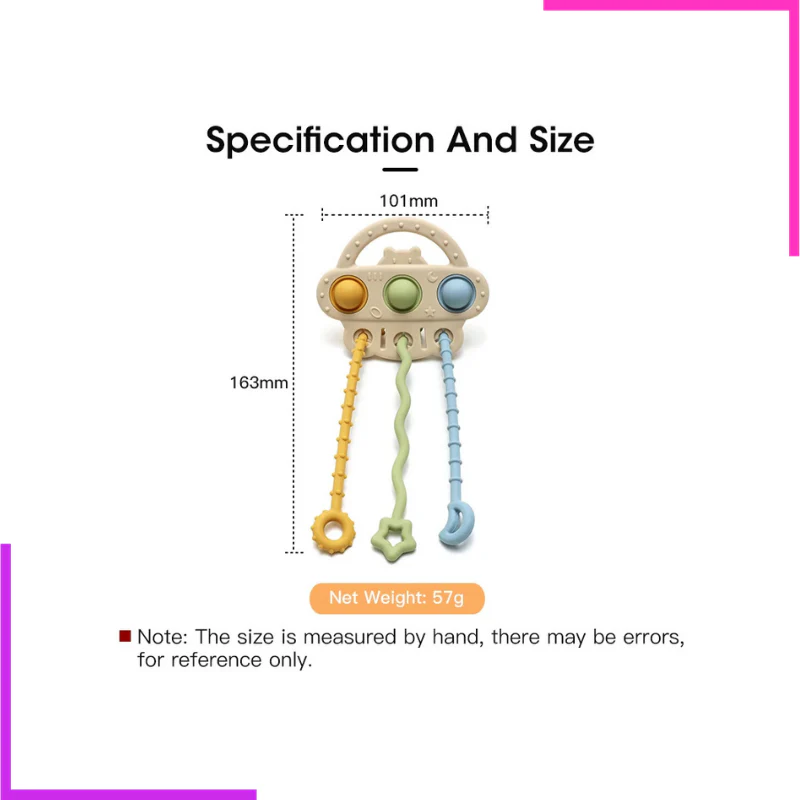 Offrez à votre bébé un jouet à la fois ludique et sécuritaire avec ce jouet interactif à corde en silicone. Conçu spécialement pour les petites mains, ce jouet coloré stimule la motricité fine et la coordination grâce à ses cordes flexibles et ses formes variées. Fabriqué en silicone souple, il est doux au toucher, facile à nettoyer et parfaitement adapté aux dents sensibles des tout-petits.