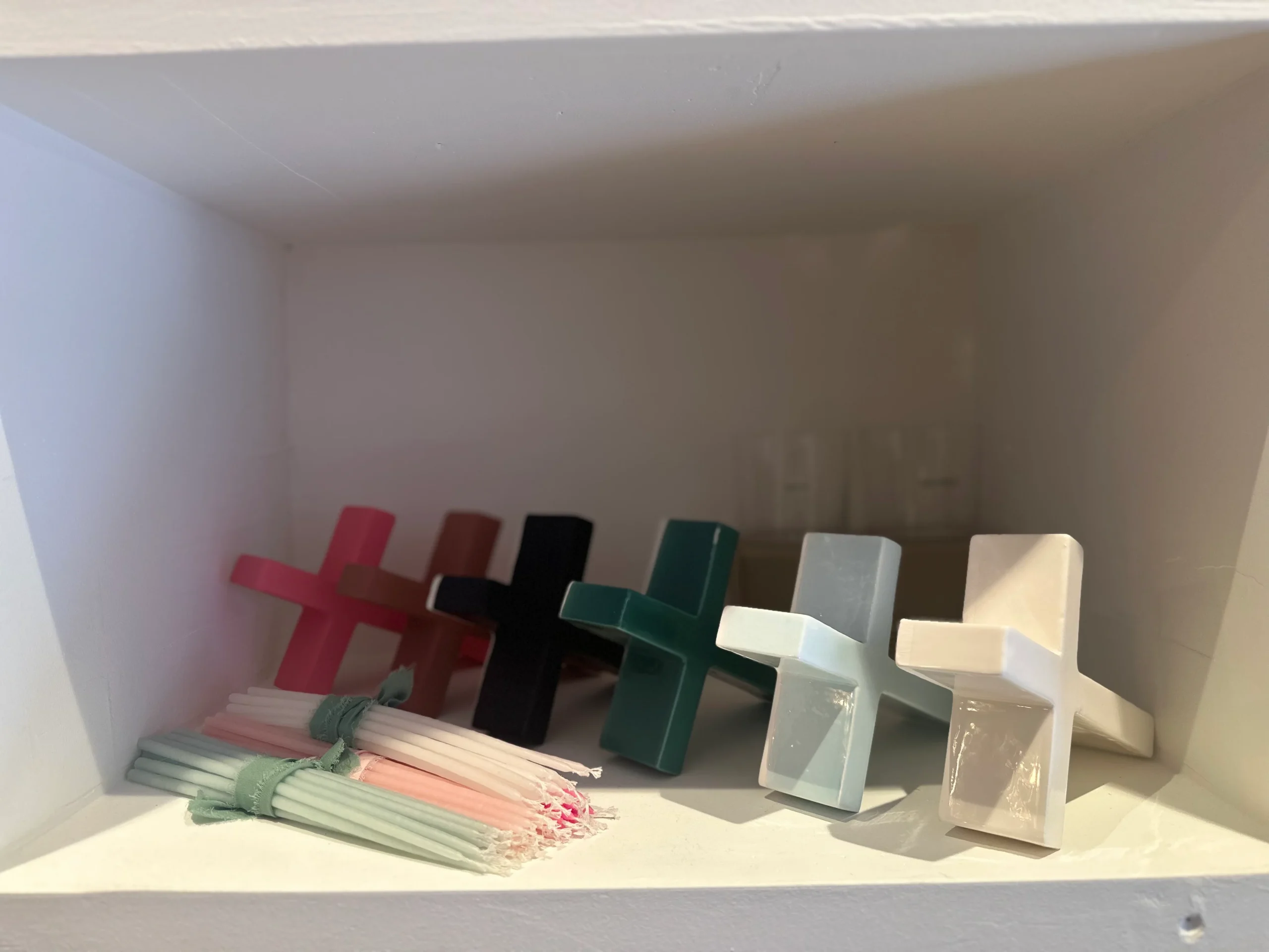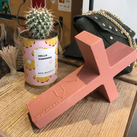En Céramique cette croix est tantôt chic ou pop, en mat ou en brillante, mais toujours avec le filigrane Bonne mère !