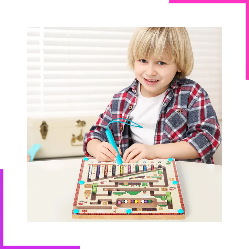Labyrinthe Magnétique de Couleur et de Chiffres en bois