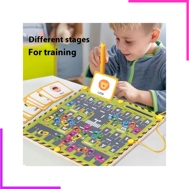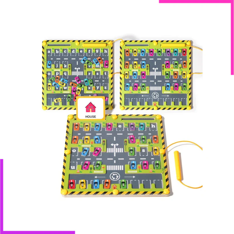 Plongez votre enfant dans un univers captivant où chaque petite voiture a une place bien précise ! À l’aide du stylet magnétique, il doit guider les voitures colorées jusqu’à leur emplacement en respectant les lettres de l’alphabet.
