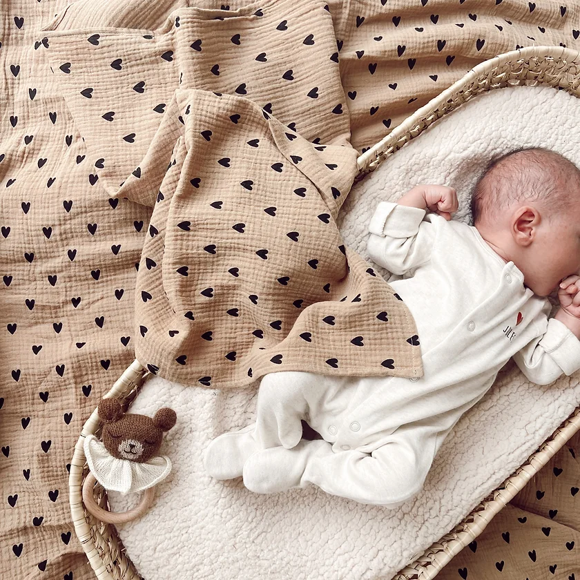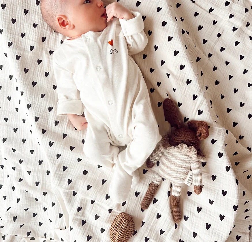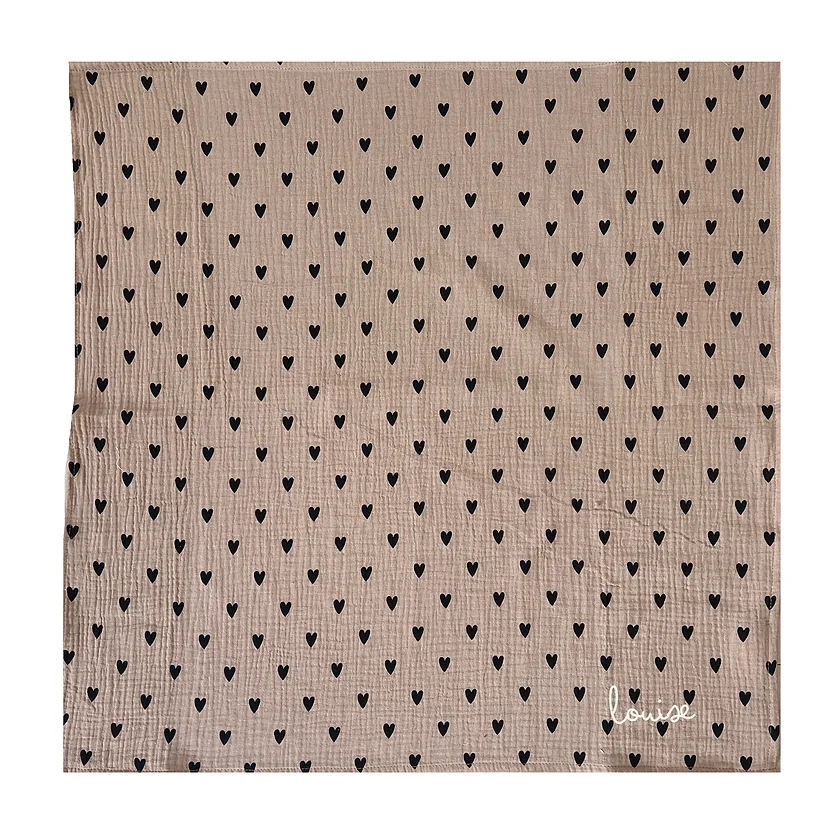 Carré de gaze au format 105x105cm en gaze de coton En couverture, en lange, en foulard adulte, ce petit accessoire vous suivra partout. Il peut être personnalisé dans le coin en bas à droite. Privilégiez une couleur de texte qui contrastera avec la couleur du tissu.