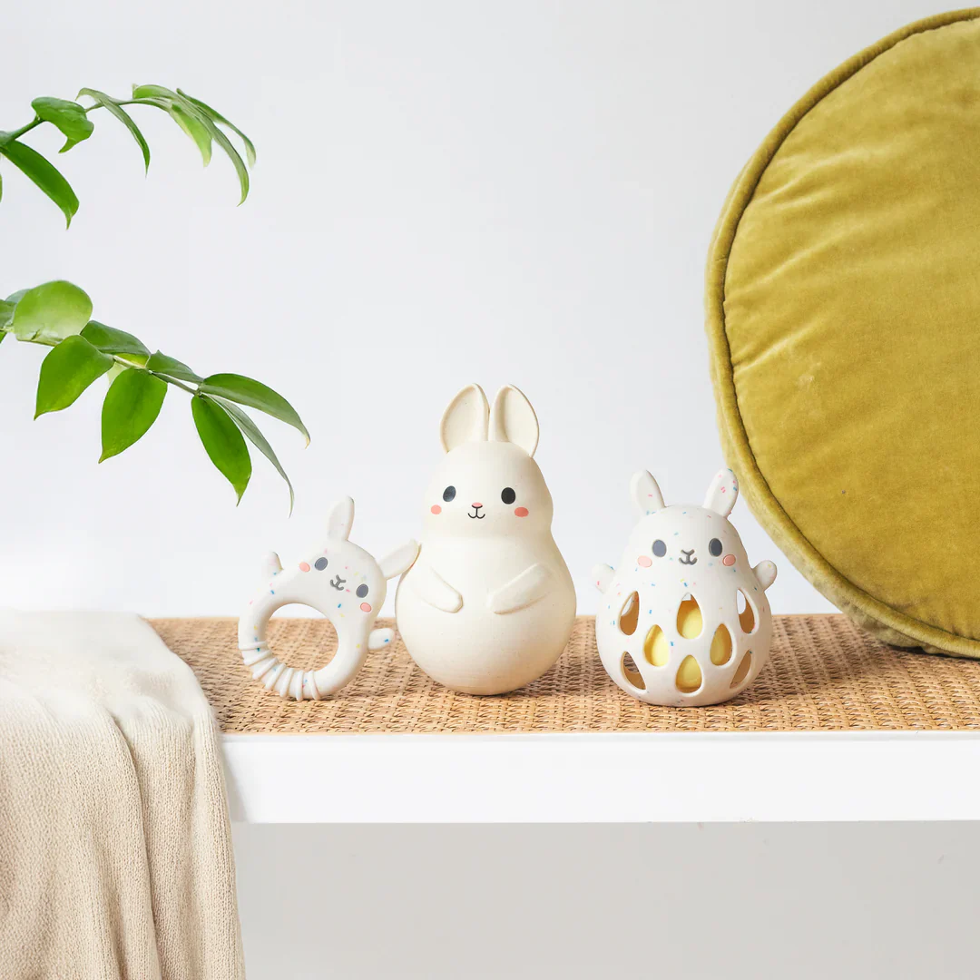 Tout doux, tout rond et irrésistiblement mignon, ce lapin culbuto signé Tiger Tribe est le compagnon idéal pour l’éveil des tout-petits ! Grâce à son système culbuto intégré, ce lapin revient toujours à la verticale, amusant les bébés tout en stimulant leur coordination œil-main.