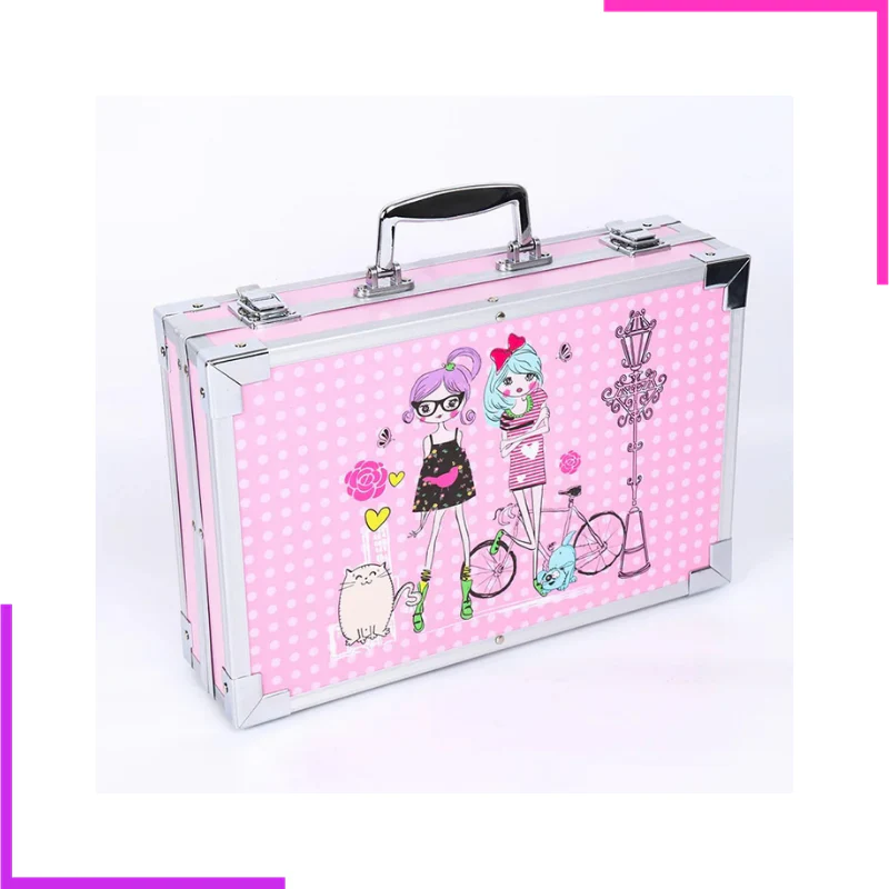 Tout dans une valise. Cette mallette ne contient pas seulement tes crayons et tes couleurs, mais aussi :