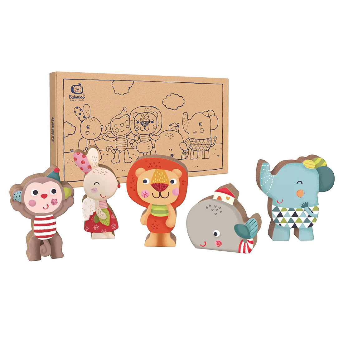 – Ensemble 5 pièces en bois de hêtre de haute qualité : Bababoo, Pipa, Youki, Vilma et Lolo