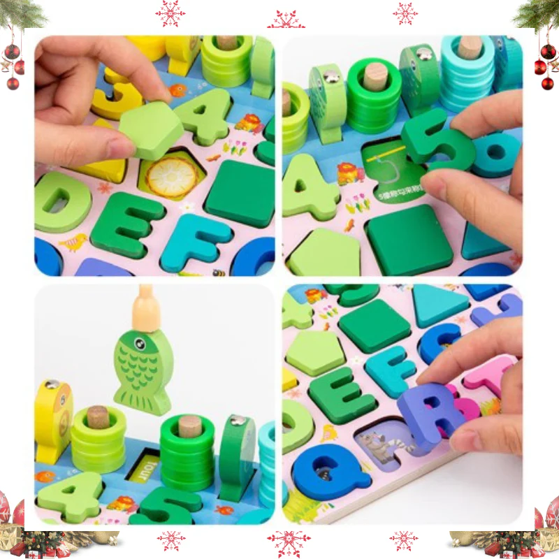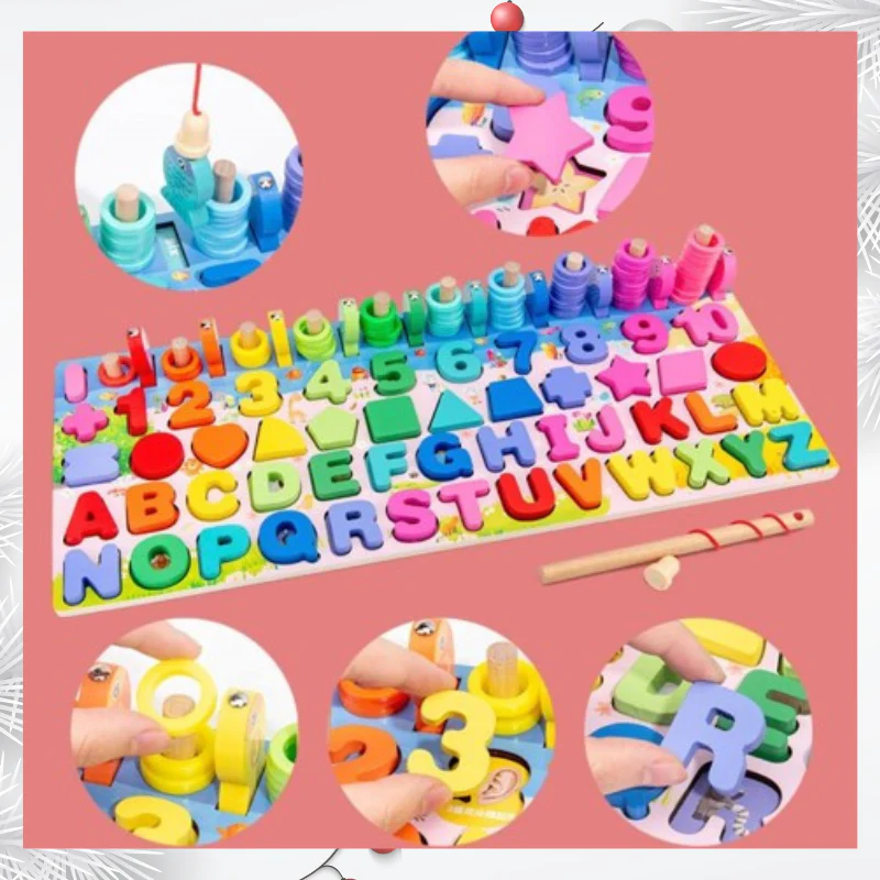 Pêche, tri, empilage et reconnaissance du nombre et de la forme dans une planche occupée en bois. La table est un excellent outil pédagogique pour l’apprentissage des mathématiques préscolaires en classe ou à la maison avec une touche de jeu de pêche magnétique. Il aide à développer l’intelligence de l’enfant et sa capacité manuelle pratique. Trier et compter les pièces, empiler les formes, nommer les couleurs des poissons, nommer les formes et les nombres sont quelques-unes de ces stratégies simples pour les débutants.