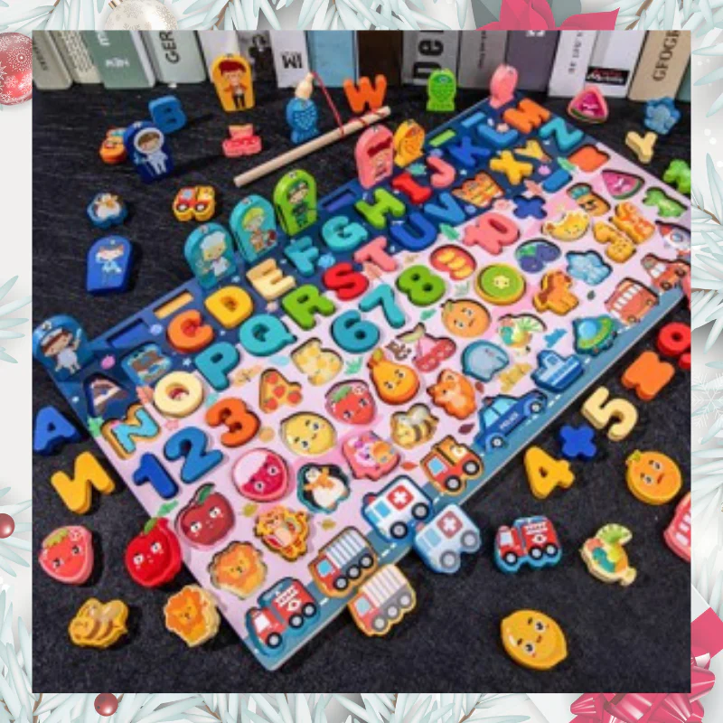 JOUET MULTIFONCTIONNEL MONTESSORI 8 EN 1: Design mignon et accrocheur Développement de l’engouement des enfants pour l’apprentissage Classement des objets, l’apprentissage des chiffres, lettres, animaux, métiers, véhicules, aliments et la pêche Amélioration des aptitudes d’identification des couleurs, de la coordination main-œil Développement de l’imagination et la créativité