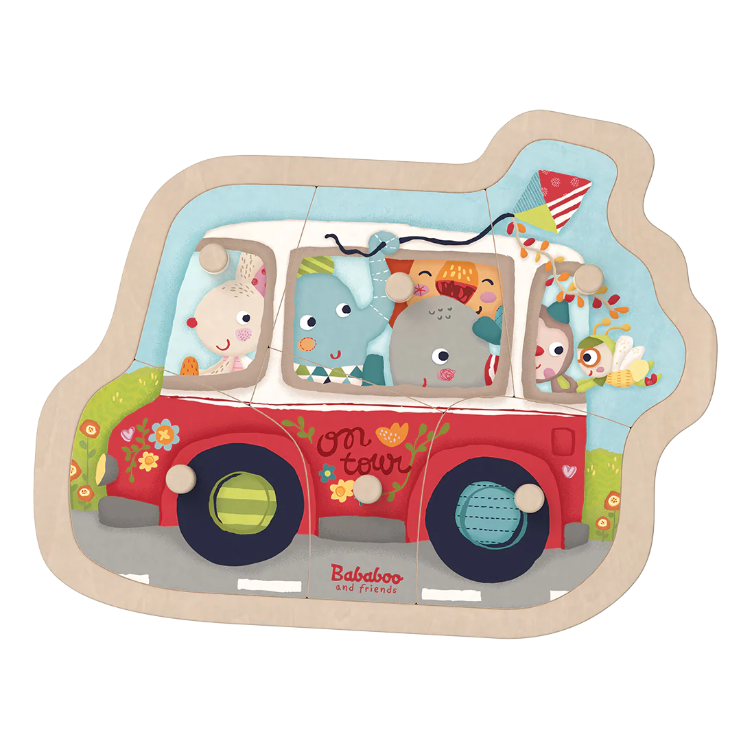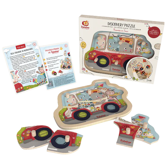 Pipa et ses amis trépignent d’impatience. Dans leur magnifique bus fleuri, ils ont hâte de partir en excursion. Tout le monde est-il là ? Le puzzle découverte de 6 pièces « Les amis en promenade » emmène les enfants dans le bus fleuri de Pipa. En retirant les pièces, l’enfant découvre l’intérieur du bus.