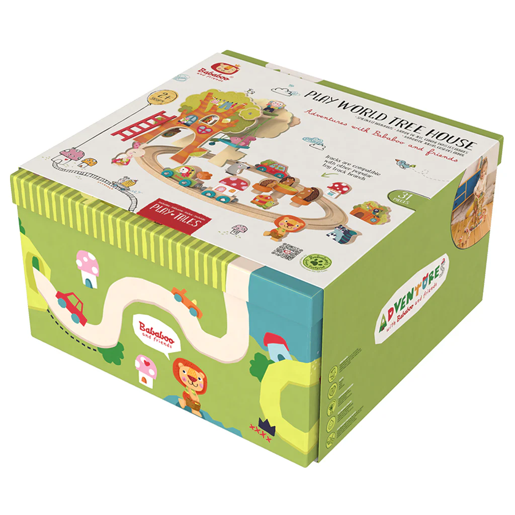 Affe Yuki und seine Freunde verbringen viel Zeit in ihrem Baumhaus und öfters reist sogar Besuch aus der Ferne an. Das Set enthält 31 Teile und bietet eine Vielzahl lustiger Aktivitäten für kleine Abenteurer! Entdecker, die sich einen „fahrbaren Untersatz“ wünschen, können auch mit Bababoo und seinen Freunden durch die Baumhauswelt brausen! Diese wunderschöne Spielwelt wurde künstlerisch gestaltet, um Kreativität zu wecken, Konzentration zu fördern und räumliches Vorstellungsvermögen zu unterstützen.