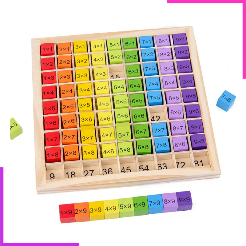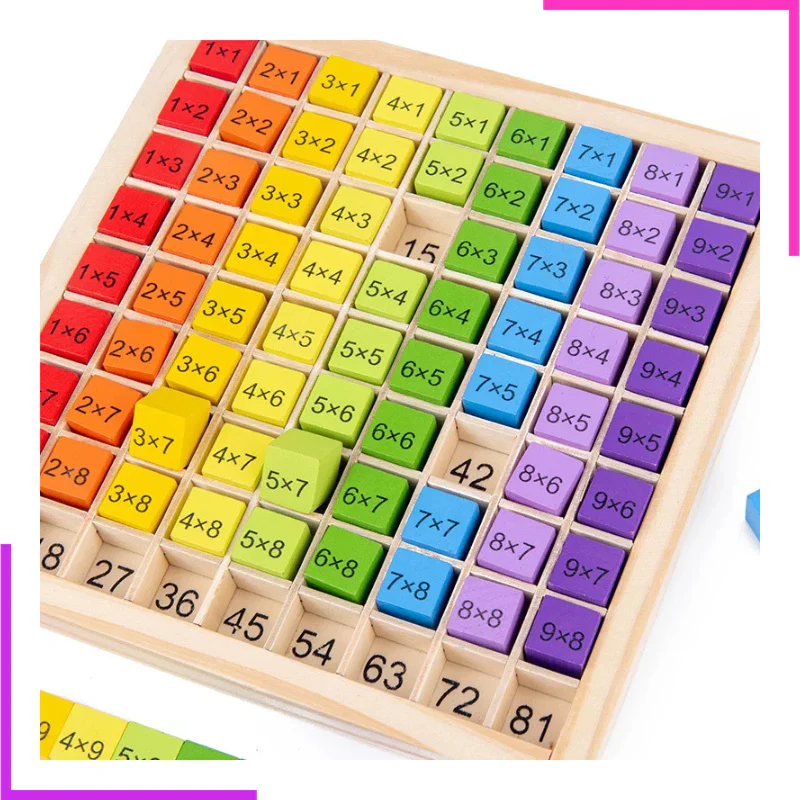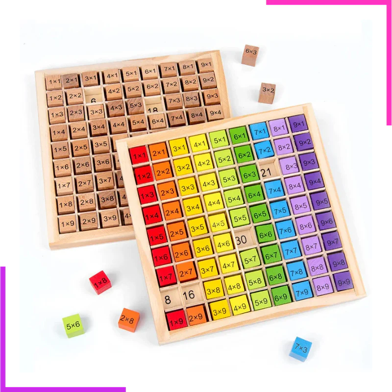 Planche à calcul pour apprendre les formules de multiplication Avec subdivision de couleur pour faciliter l’apprentissage des séries de nombres individuelles En bois durable Pour les enfant de 6ans+