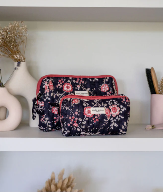 Conçues avec une attention particulière aux détails, nos trousses reflètent l’engagement de Bindi Atelier envers le savoir-faire artisanale du blockprint et la qualité.