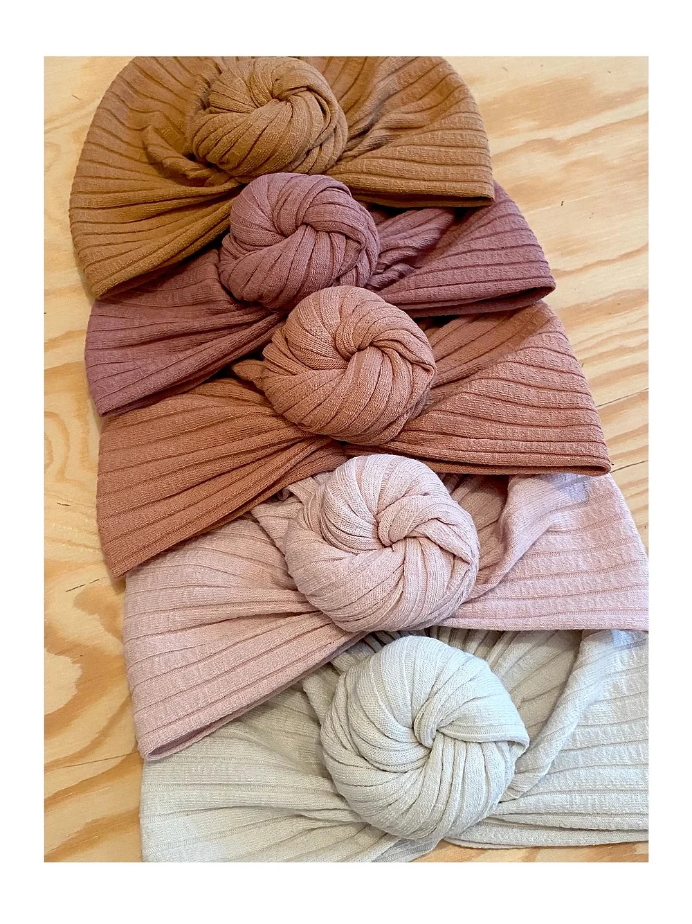 Turbans noeuds fleurs en jersey de coton certifié Oeko tex grosses côtes.