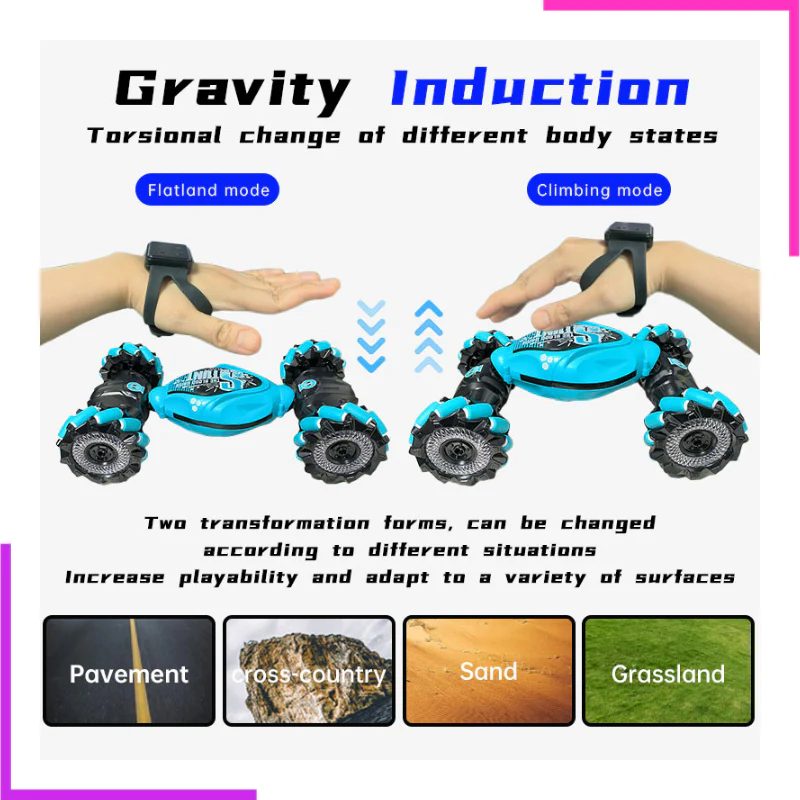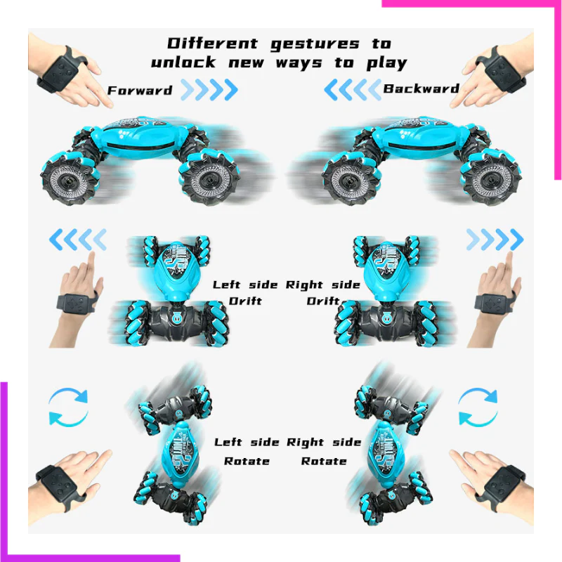 - Placez la montre sur la main et contrôlez la voiture de cascade en changeant les gestes