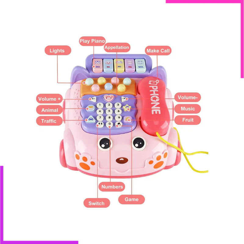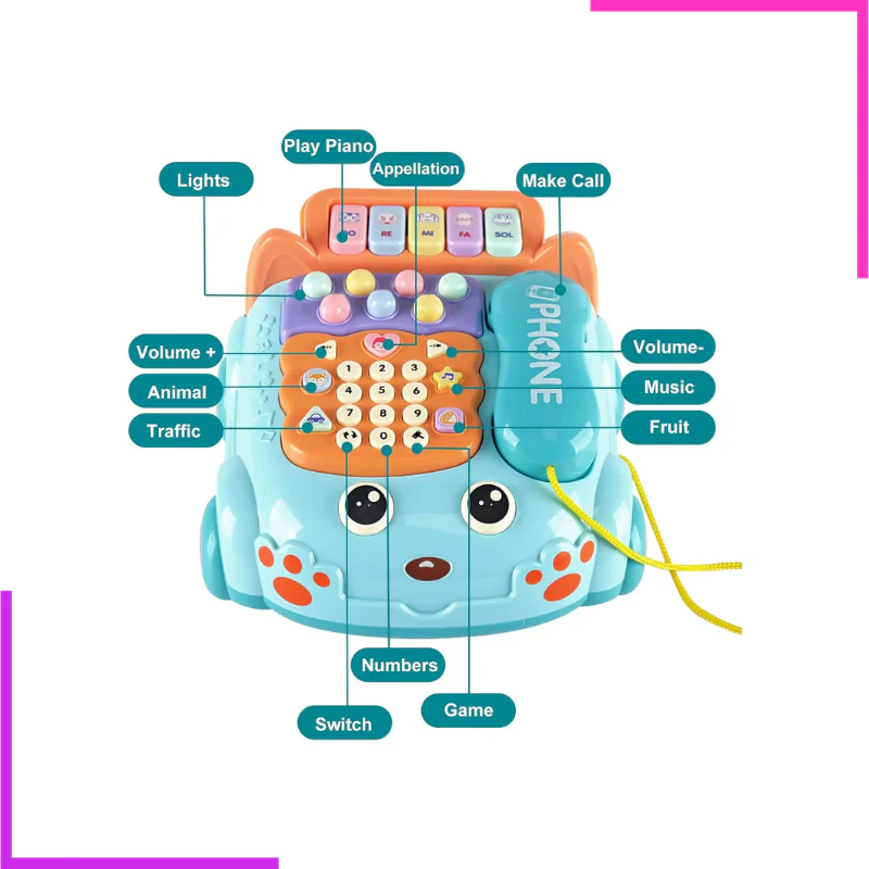 Jouet interactif 2-en-1 combinant téléphone, piano et apprentissage.